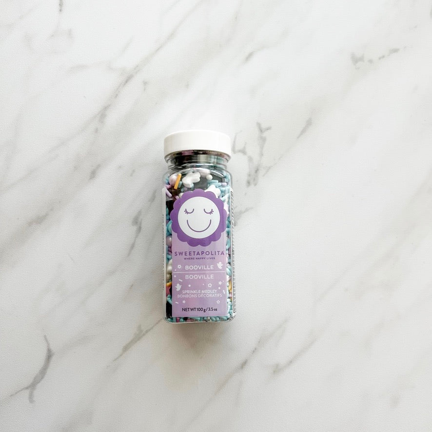 Welcome to Booville! This bright pastel too-cute-to-spook sprinkle mix adds a premium + playful twist to all your sweet treats. Don't be scared to get creative 👻