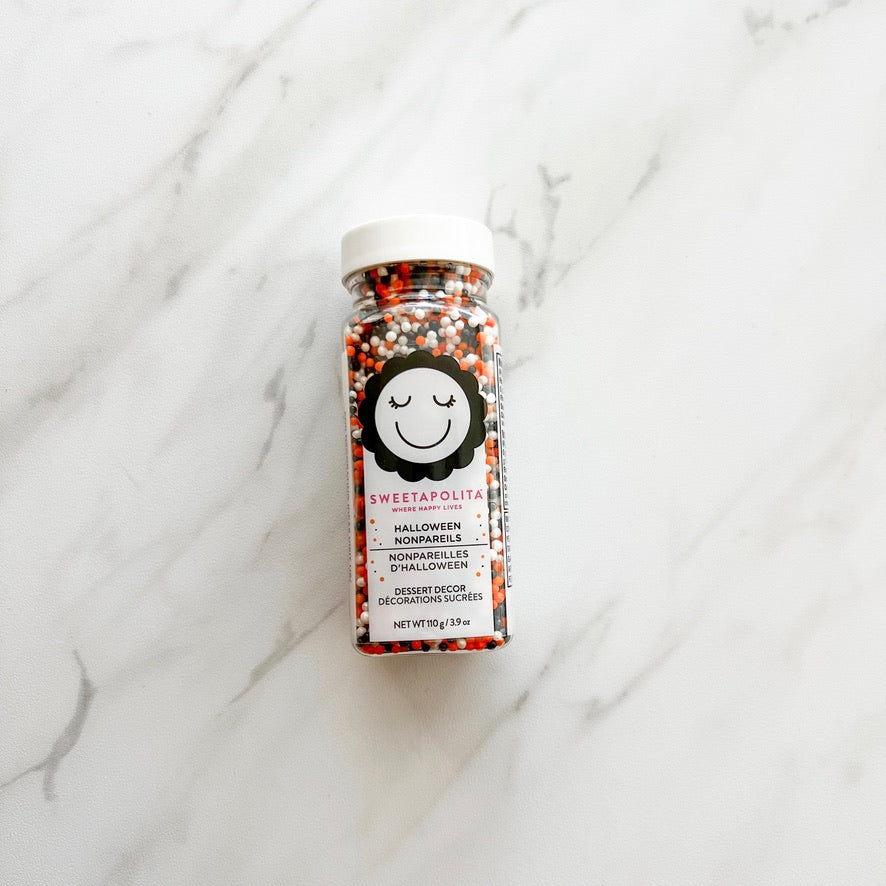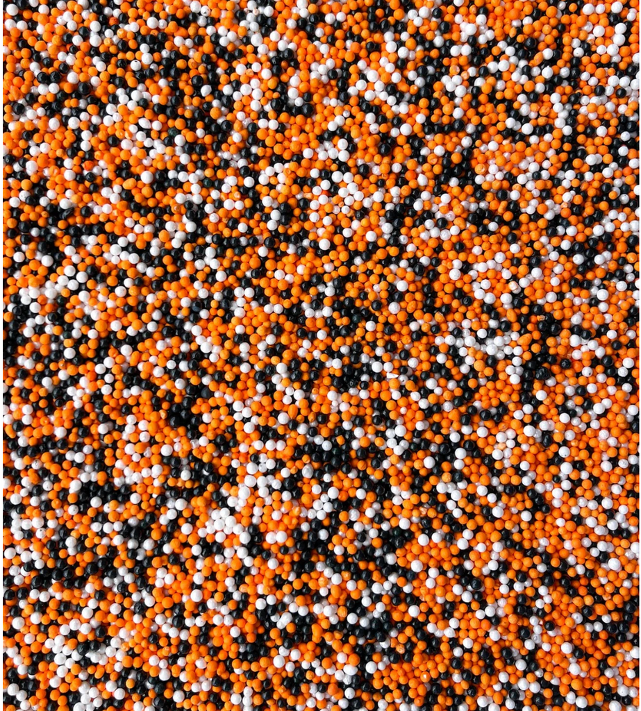 HALLOWEEN NONPAREILS are perhaps the most classic of all the Halloween sprinkles! These nonpareils are the perfect addition to any spooky cake batter, cookie dough, or of course, sprinkle on top of your favourite Halloween treats!